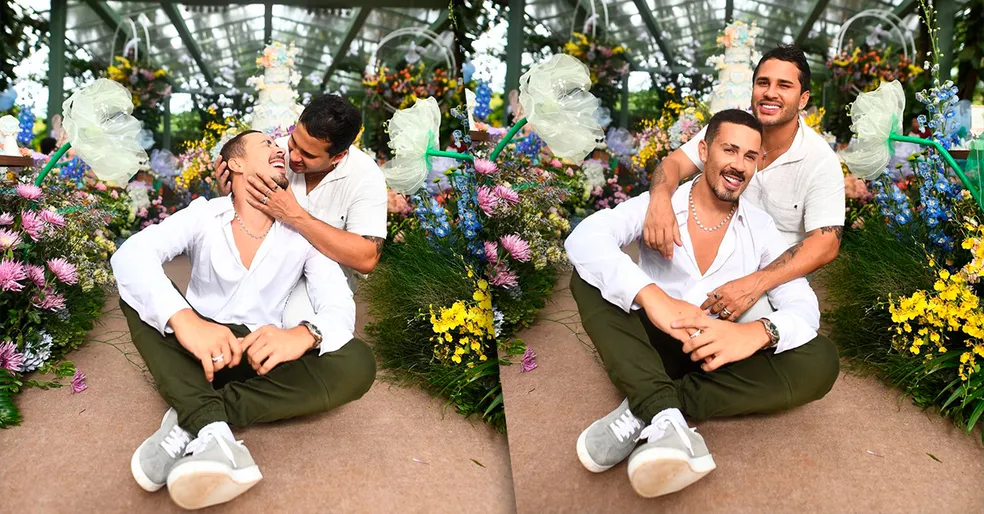 Carlinhos, que está junto do também influencer Lucas Guimarães há mais de 13 anos, postou algumas fotos na cerimônia e mandou o recado para o parceiro na legenda: